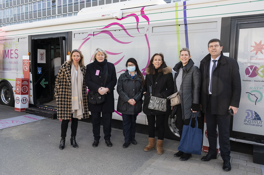 Le Bus Santé Femmes, ancien véhicule de la RATP, circule depuis 2019 dans les communes du 78 et du 92. Il vient à la rencontre des habitantes des quartiers précaires, pour leur offrir des services sanitaires et sociaux dans ses espaces confortables : médecin, infirmière, psychologue, avocat ou officier de police y délivrent conseils, dépistages, consultations, aide aux démarches juridiques, prévention sur des sujets sensibles comme la violence ou le harcèlement. Les consultations sont gratuites et sans rendez-vous, anonymat garanti. Le bus est une création de l’Institut des Hauts-de-Seine, l’association qui a fondé les Écoles Française des Femmes.